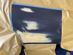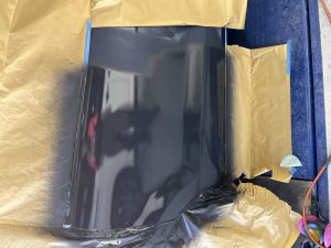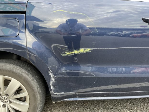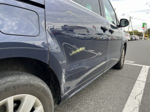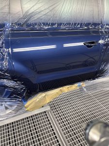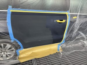 今回は右のリヤドア鈑金とブロック塗装を行いました。