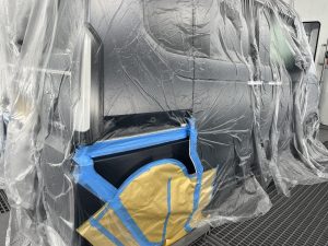 今回は右のリヤドア鈑金とブロック塗装を行いました。