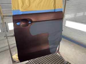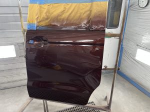 右のリヤドア鈑金修理とブロック塗装をしました。