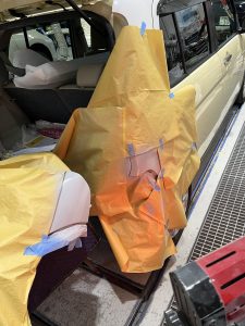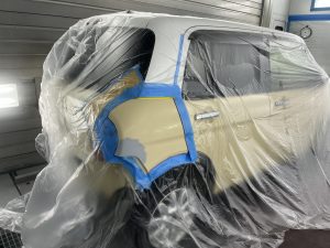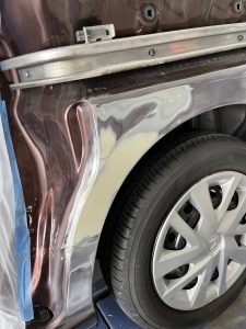 今回は左のリヤドアとクォーターの鈑金塗装を行いました。