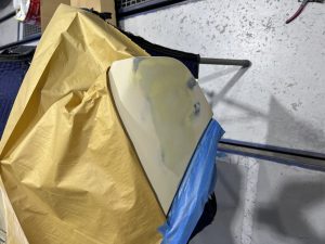 左のリヤフェンダー、ステップの鈑金塗装の様子です