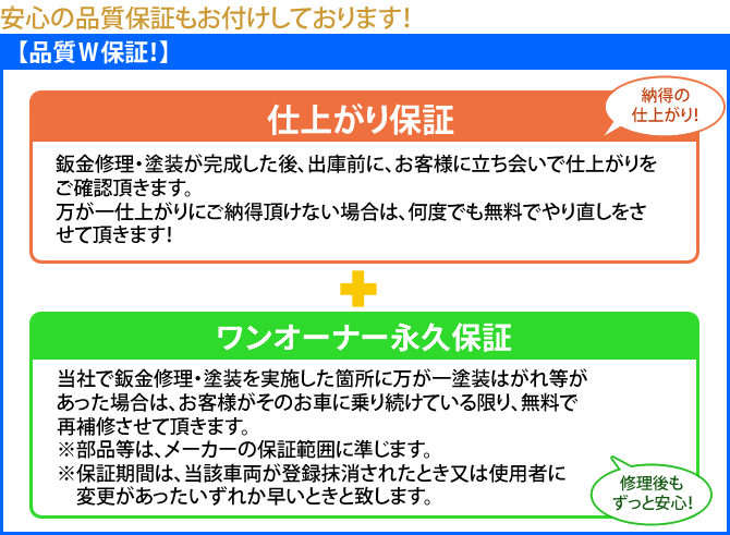 当社で鈑金塗装をご利用頂き、次回の車検をご予約頂いたお客様には、次回車検までの最長2年間、エンジンオイル交換を何回でも半額で実施させて頂きます!